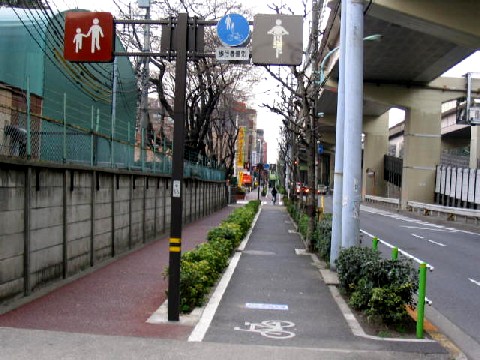 また実際には、先進都市と言う割には、数百メートルだけしかセパレートされていません。歩道橋などで、プッツリ切れているところもあります。同じような道路が延々と続くにもかかわらず、HPに載せるから、一部だけつくってみたようにしか見えないのも事実です。
