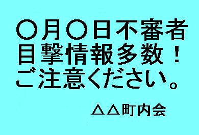 個人個人でもいいですし、地区で統一してもいいですが、ある一定期間ごとに表示を変えます。「○月○日より通学路の安全、緊急点検中」とか、「○月○日、○丁目で空き巣発生!」、「○月○日、不審者目撃情報多数!」など、なるべく日付を入れてタイムリーなものを掲げるわけです。より臨場感が出ます。実証されたわけではありませんが、プレートの効果も上がると思います。