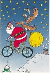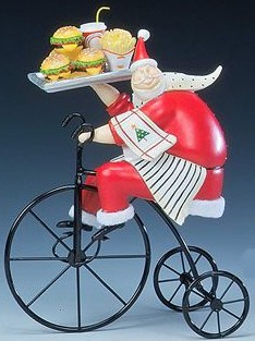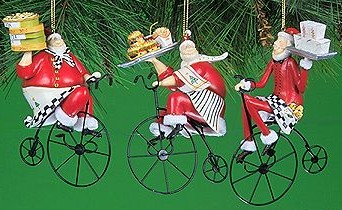 まず、クリスマス用のオーナメントや置物です。サンタクロースが自転車に乗ってるなんて、ありそうで、ないでしょう。クリスマスツリーなどに飾るオーナメントは、クリスマスギフトとは言えないかも知れませんが、クリスマスパーティーなどでのプレゼントとしてなら、無難なところかもしれません。