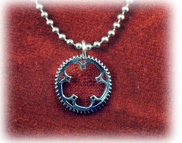 ピンやネックレスもあります。ただ、下の左のは似合うかどうか難しいところです。犬の首輪のようになりそうですし、単に廃品利用と疑われる可能性もあります(笑)。