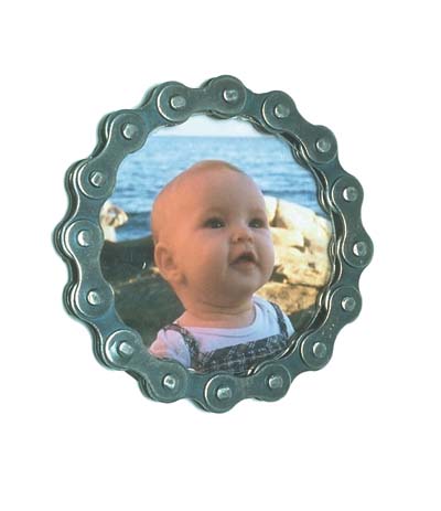 こうした写真立てなどもよくあるアイテムですが、自転車のついたものをいざ探そうとすると、なかなか見つからないと思います。チェーンを使ったものもあります。好きでない人には「何これ?」って言われそうですけど。