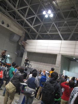 耳寄り情報コーナーとか、コンシェルジュコーナーなど、新しいイベントブースも出来ていました。BMXは、ジャンプのハーフパイプの特設ステージや、平らな場所での技を見せるフラットランドのコーナーがあり、その人だかりを見ると、年を追うごとに人気が高まっている感じがします。