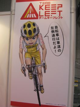 疋田さんは、キープレフトのブースでも、アリとキリギリスの石井正則氏と一緒にやっている番組のラジオの公開収録をやっていました。自転車の交通ルール遵守とマナーアップを啓蒙するプロジェクト、キープレフトですが、今年はアニメ・弱虫ペダルとのコラボでした。