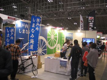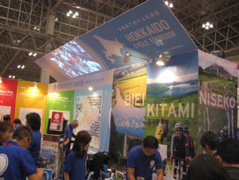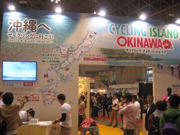 今年は、各観光地のブースが例年に増して大きくなっていたように思います。沖縄、北海道、しまなみ海道、屋久島、千葉、栃木、琵琶湖、奈良、グァムなどですが、サイクリストの誘致に絶好の機会ということなのでしょう。全体の広さは同じなので、各地のブースが大きくなったぶん、他の出展者が減ったのかも知れません。