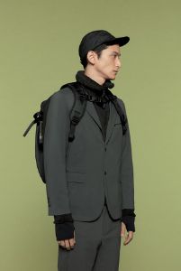 ここ数年、「クラシック回帰」がキーワードと言われつづけてきたスーツに、まったく異なった潮流が生まれている。ジャケットとパンツ。あくまでも形はスーツでありながら、防風、透湿(とうしつ)、防シワ、撥水(はっすい)といった高い機能を有する「ギアスーツ」と呼ばれる新しいビジネスウェアである。