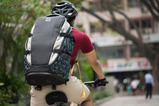 一方、スポーツバイクに乗る人も含め、必要な時にバックパックやメッセンジャーバッグなどを担いで乗るほうを好む人も多いのではないでしょうか。いちいち着脱したり固定する手間もありませんし、背中に背負えば両手が使えて、自転車に乗るのにも邪魔になりません。