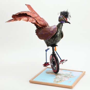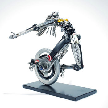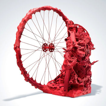 ところで、このブログでも何度か取り上げましたが、いらなくなった自転車のパーツ、廃材を使ってアート作品に仕上げるアーティストもいます。この分野の展覧会というのは、なかなか無いので、今回は、自転車のパーツを使った芸術作品を取り上げてみたいと思います。