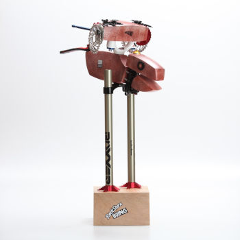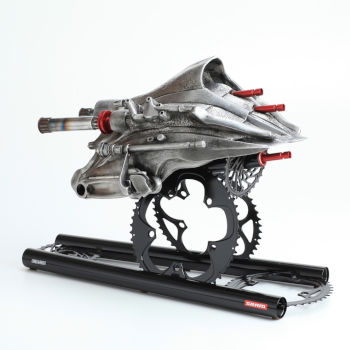 社が過去に開催したコンテストの作品です。アーティストにパーツを提供し、作品の展示後にオークションにかけ、チャリティとして世界で自転車を提供する活動を行っている慈善団体に寄付するというイベントでした。