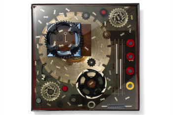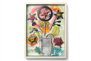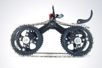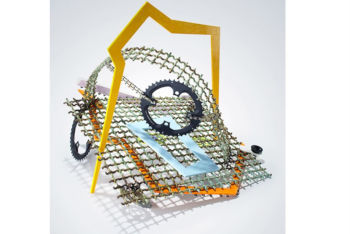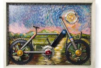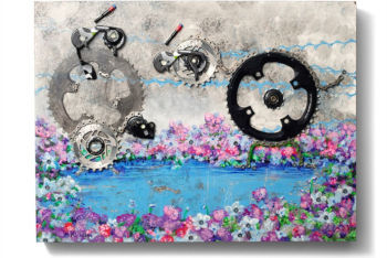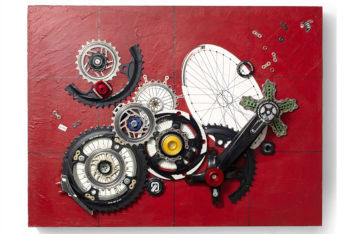 ただ、このようなアートになると、どうしてもギヤやチェーンといった、メカニカルな面が強調されがちになります。もちろん、自転車もある種の機械であるのは間違いありませんが、パーツになった途端、逆に現代の機械文明を象徴するかのように使われたりするのも面白いところです。