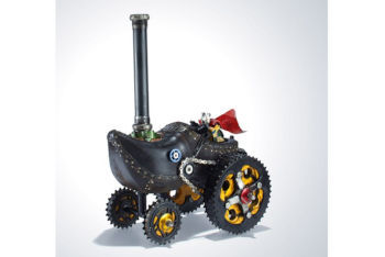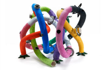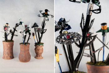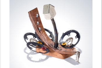 少し前に、自転車のパーツを使って、別の乗り物を作ったり、楽器や時計などを作ってしまう人、DIYする人を取り上げました。いわば大人の工作です。何かの目的があって作られたものでしたが、こちらのアートの場合は、必ずしも用途や目的は必要ありません。