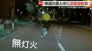 茨城・つくば市で23日、車道を逆走する自転車が目撃された。車のドライバーが事前に危険を感じて停車していたため、正面衝突を避けることができたが、自転車はライトもつけておらず、危険な状況だったという。
